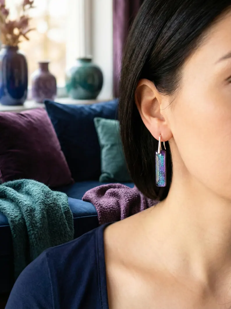 Entdecken Sie den fesselnden Reiz unserer handgefertigten 925 Sterling Silber Hängeohrringe, entworfen, um jedem Outfit einen Hauch einzigartiger Eleganz zu verleihen. Jedes Paar verfügt über echte 925 Sterling Silber Ohrhaken, die Komfort und Haltbarkeit auch für empfindliche Ohren gewährleisten. Der Hauptanziehungspunkt ist der faszinierende rechteckige Anhänger, der mit einem brillanten, dynamischen Schimmer versehen ist, der das Licht aus jedem Winkel einfängt und ein ständig wechselndes Funkeln erzeugt. Diese handwerklichen Ohrringe sind ein Zeugnis sorgfältiger Handwerkskunst, die minimalistisches Design mit einer fesselnden Textur verbindet. Perfekt, um Ihren Alltagsstil aufzuwerten oder besonderen Anlässen einen raffinierten Glanz zu verleihen. Diese leichten Hängeohrringe sind bequem den ganzen Tag zu tragen. Sie sind ein unvergessliches Geschenk für sie, sei es zum Geburtstag, Jahrestag oder einfach als Wertschätzung. Erleben Sie den unaufdringlichen Glamour und den unverwechselbaren Charme, die wirklich ‘Dinge für die Seele’ sind, mit diesem exquisiten Schmuckstück.