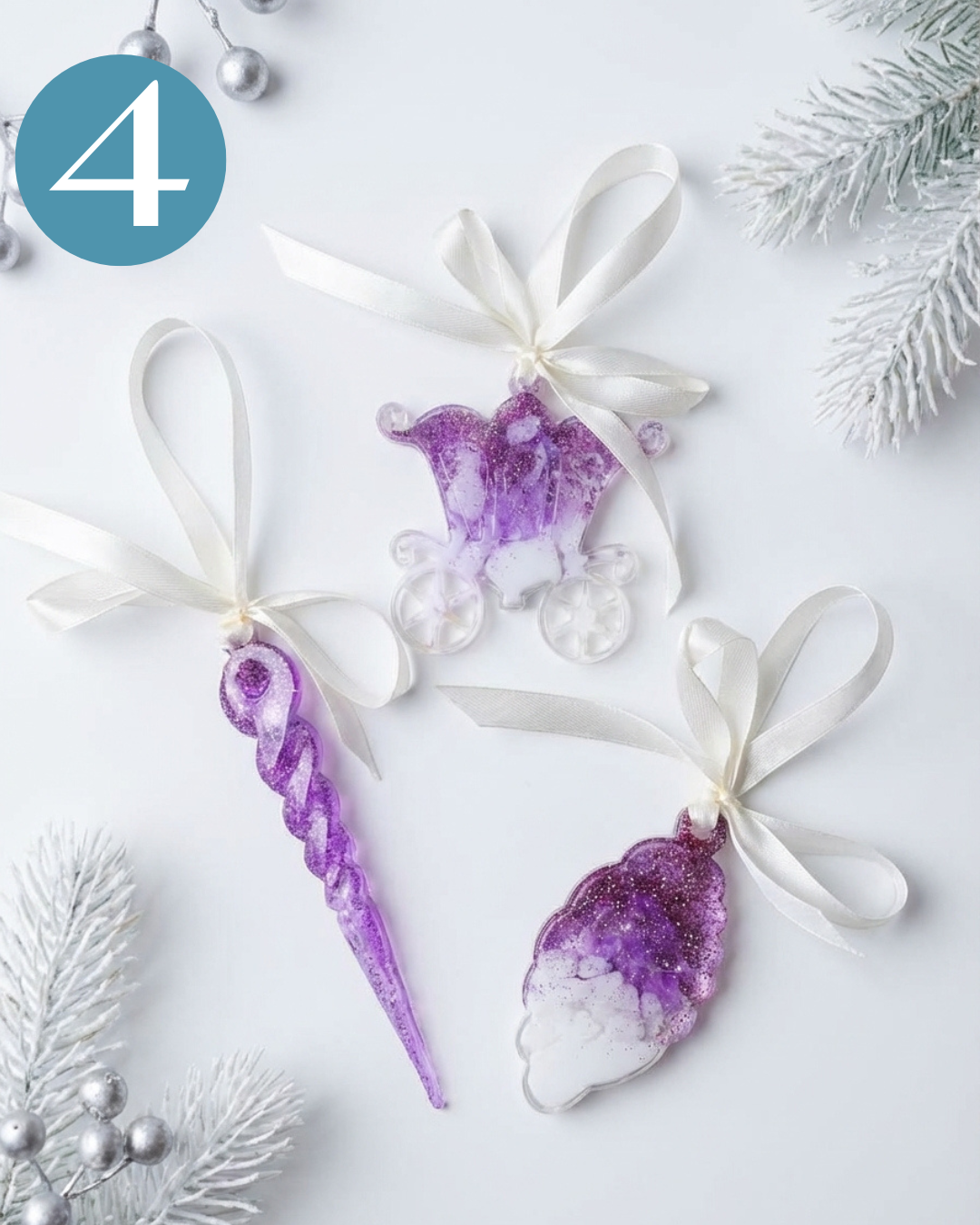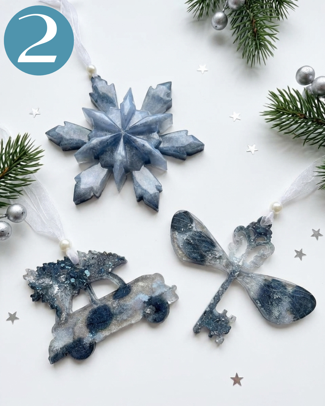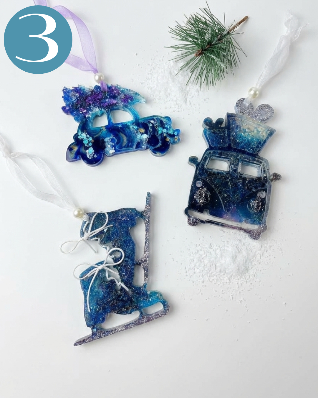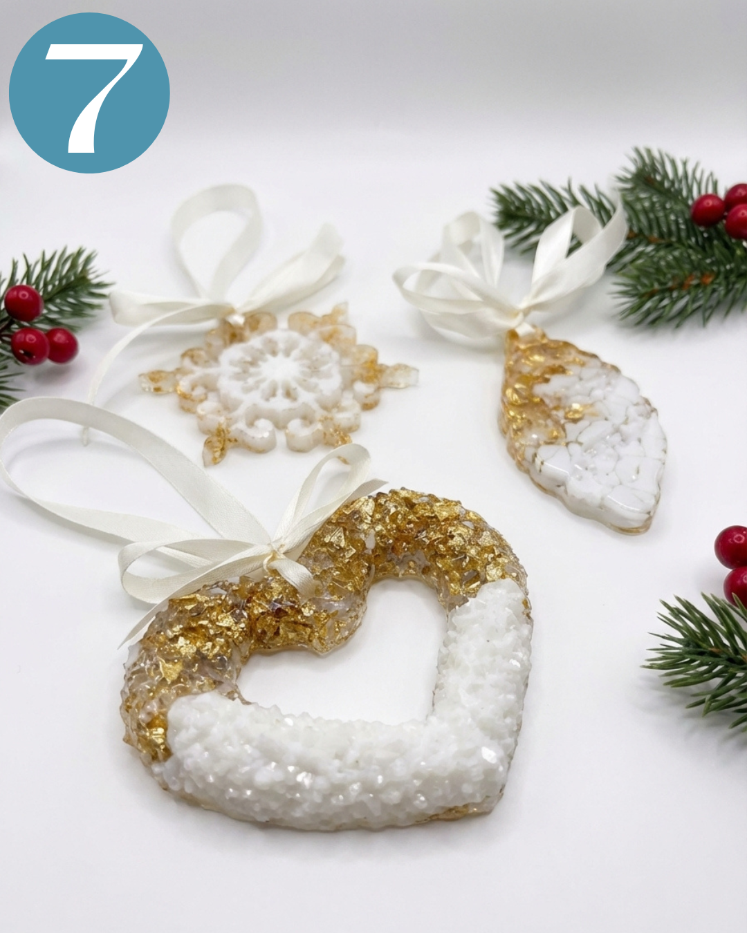 Dieses liebevoll gestaltete Set aus Weihnachtsanhängern wird vollständig von Hand aus Epoxidharz gefertigt. Jedes Element entsteht in einem sorgfältigen Prozess und ist ein kleines Kunstwerk für sich.