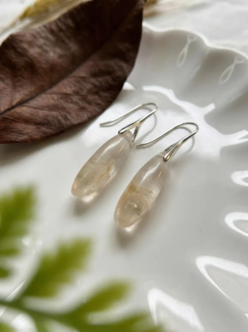 Entdecken Sie die schlichte Eleganz unserer Natur Edelstein Ohrringe, eine wahrhaft einzigartige Ergänzung für Ihre Schmucksammlung. Jedes Paar verfügt über echte, handverlesene Natur-Edelsteine, wunderschön geschliffen und poliert, um ihre inhärente Transluzenz und subtilen inneren Texturen hervorzuheben. Diese exquisiten Steine sind an hochwertigen 925 Sterling Silber Haken befestigt, die sowohl Langlebigkeit als auch hypoallergenen Komfort für empfindliche Ohren gewährleisten. Das minimalistische Design dieser Ohrringe macht sie unglaublich vielseitig; perfekt, um Ihren Alltagsstil aufzuwerten oder einem besonderen Anlass einen Hauch von ruhiger Raffinesse zu verleihen. Ihr geringes Gewicht sorgt für ein angenehmes Tragegefühl den ganzen Tag über, was sie zu einer idealen Wahl für die moderne Frau macht, die natürliche Schönheit und Handwerkskunst schätzt. Als ‘THINGS FOR THE SOUL’ konzipiert, sind diese Ohrringe nicht nur ein Accessoire, sondern tragen auch eine subtile Verbindung zur beruhigenden Energie der Natur in sich. Sie sind ein nachdenkliches und geschätztes Geschenk für Geburtstage, Jubiläen oder einfach als Zeichen der Wertschätzung für einen besonderen Menschen in Ihrem Leben, einschließlich Ihnen selbst. Umarmen Sie den sanften Reiz dieser kunstvollen Edelsteinohrringe und lassen Sie Ihren persönlichen Stil mit natürlicher Anmut erstrahlen.